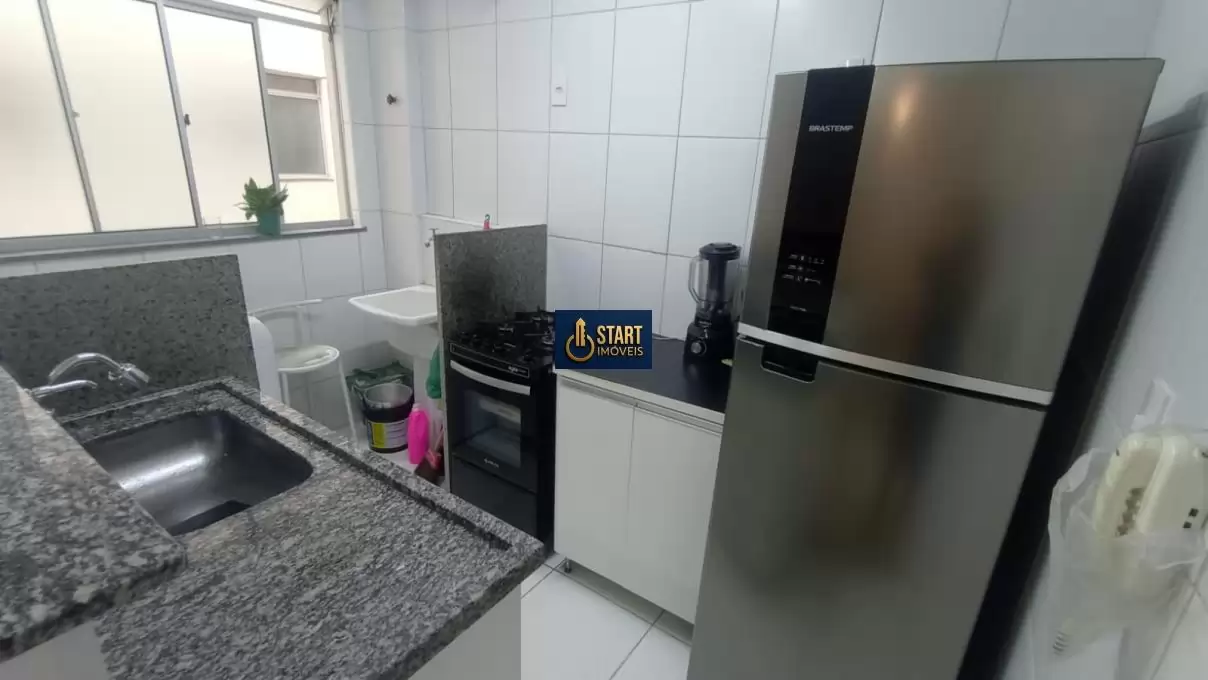 São 2 quartos, sala confortável, banheiro social, cozinha integrada à área de serviço e vaga de garagem coberta.